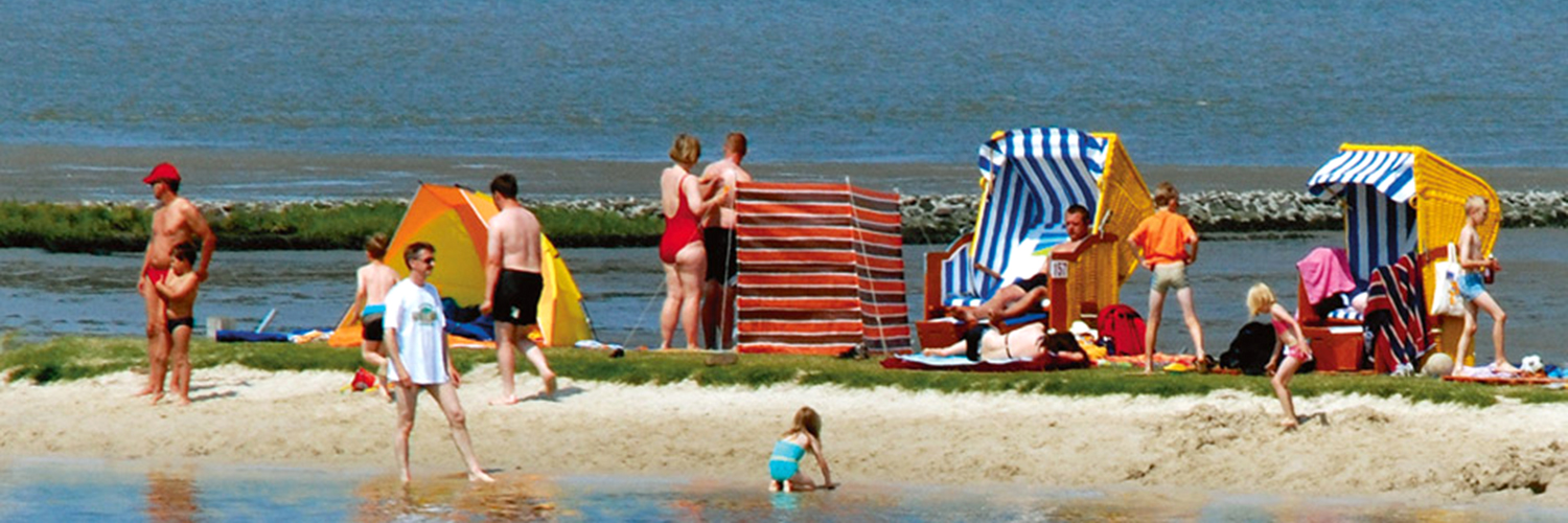 Wir haben die Ebbe abgeschafft – Butjadingen hat jetzt täglich Hochwasser von 10.00 – 18.00 Uhr, wenn die Sonne lacht (Juni bis August) bis 20.00 Uhr. Flache Strandabschnitte mit sicheren Bade- und Spielmöglichkeiten für Kinder.