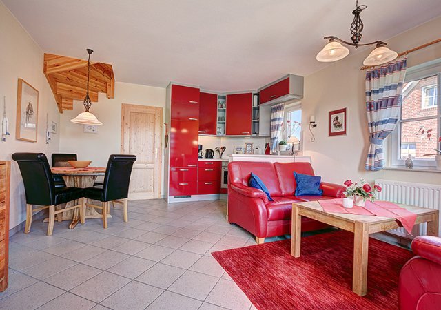 EG: Wohnraum mit angeschlossener Küche, Essecke, Gäste-WC,